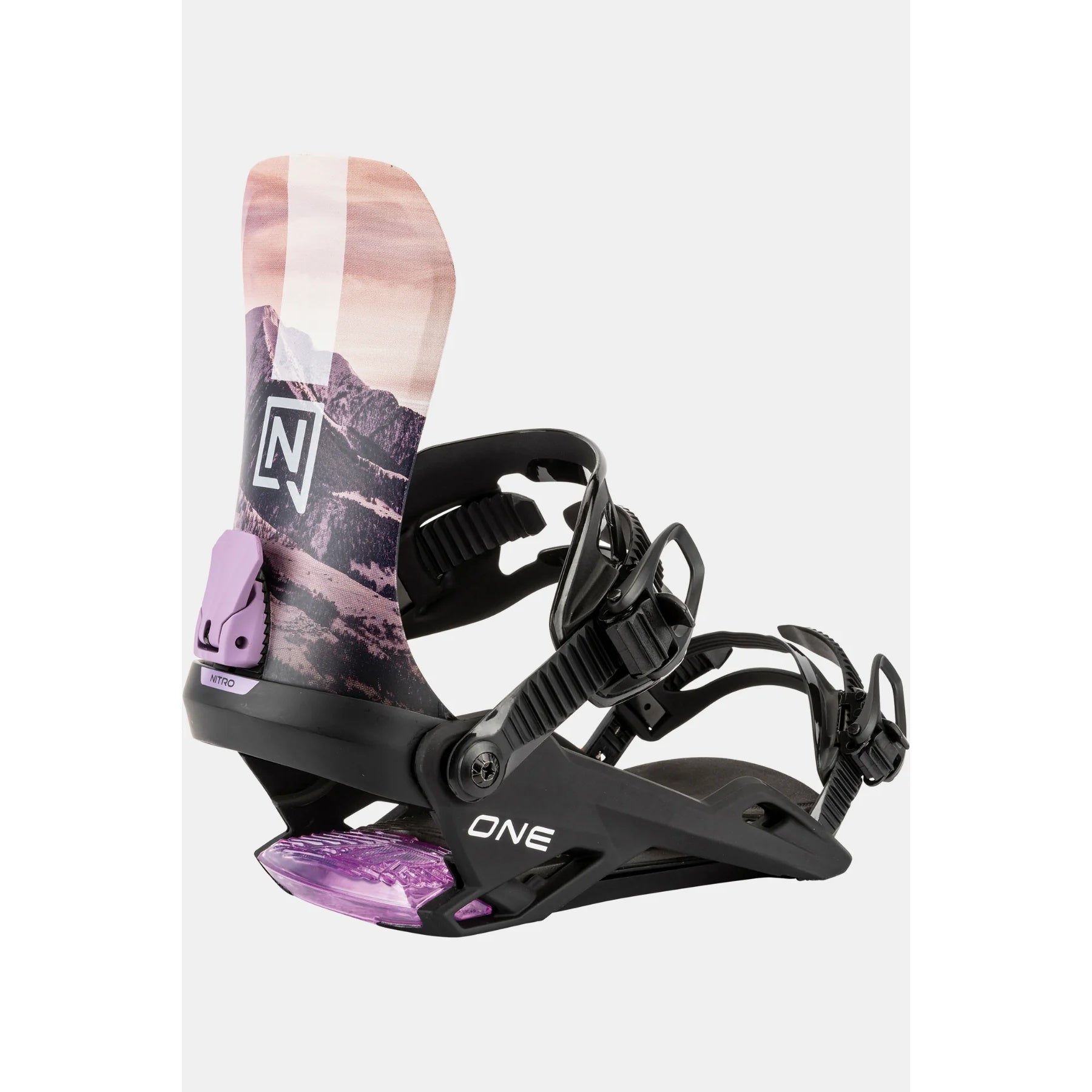 The Nitro One snowboard binding is expertly engineered for riders who appreciate a clean, minimalist aesthetic without compromising per formance....