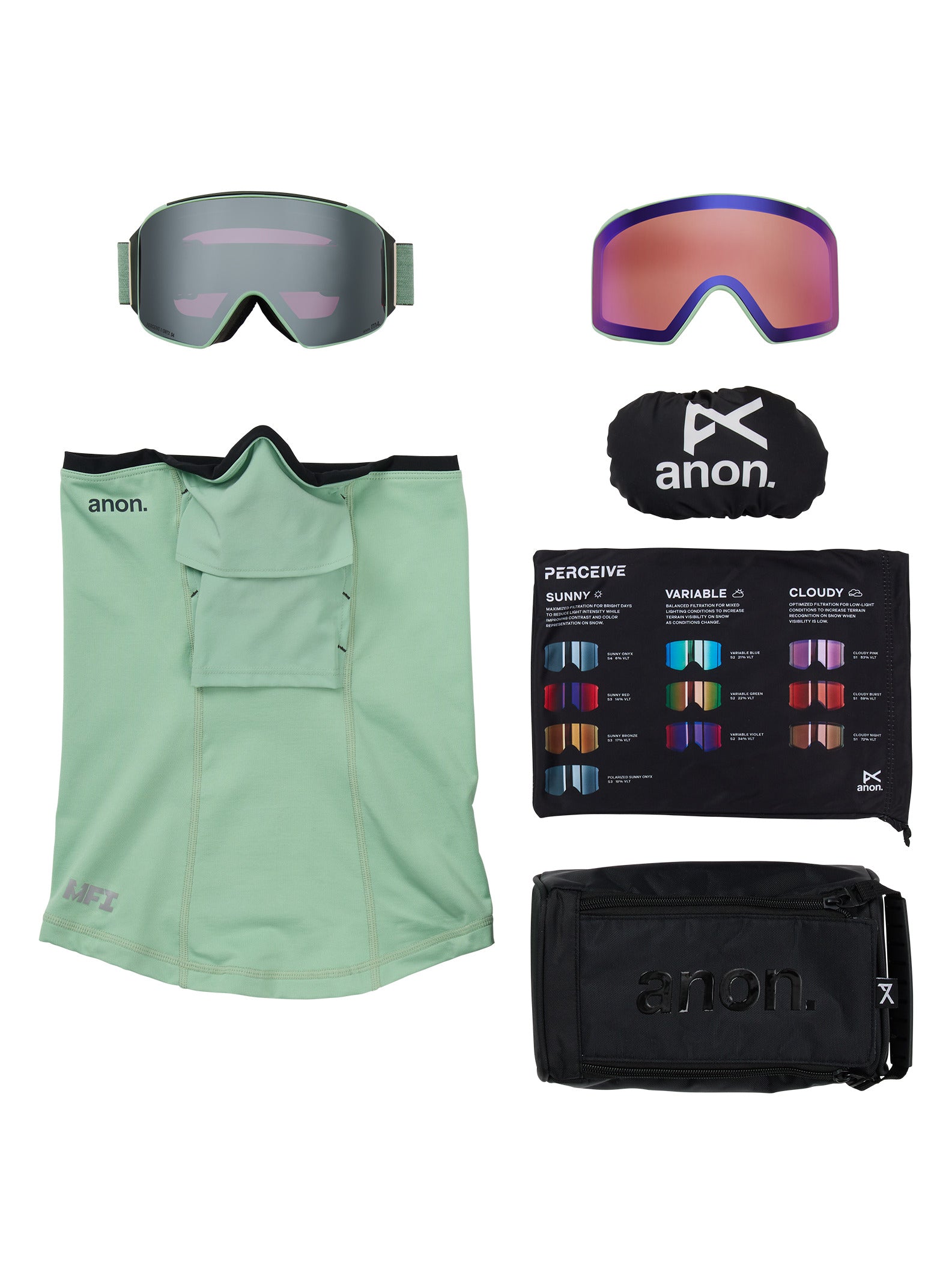 M4 Goggles (Cylindrical) + Bonus Lens + MFI® Face Mask Soft Sage/Perceive Sunny Onyx