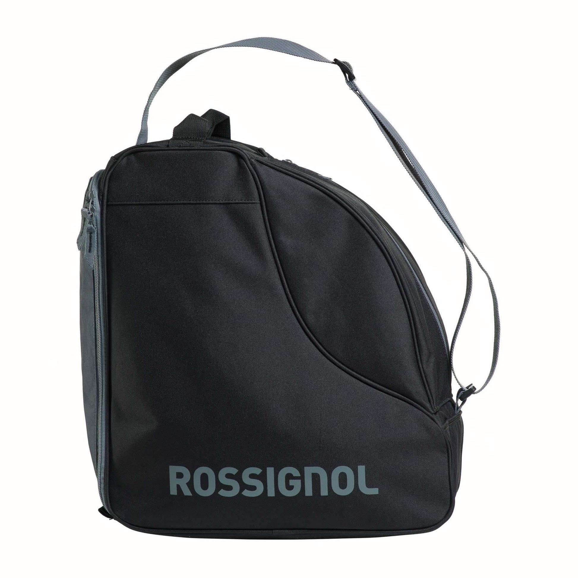 Keep your ski gear organized and easy to haul with the Rossignol Tactic Boot Bag. It holds one pair of ski boots up to size 30.5 for easy travel, while an accessory pocket keeps dry socks or small items handy. The heavy-duty build stands up to travel day wear and seals out wet weather. Hands-Free Carry An adjustable shoulder strap frees up your hands for other gear. Heavy-Duty Durability Durable 600 denier build is coated for waterproof protection